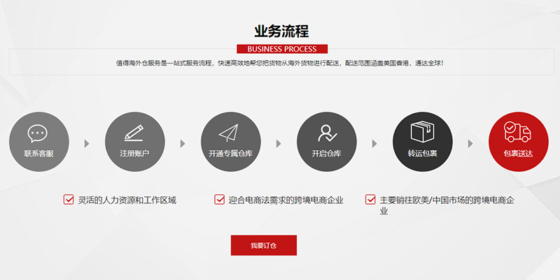 簡單來說,海外倉儲服務就是有海外倉物流商為跨境電商提供的建立在本國外其他國家建立的貨物儲存物流服務??梢杂脕泶娣趴缇称脚_上售賣的商品。雖然說是倉儲服務,但是現(xiàn)在的海外倉業(yè)務已經(jīng)多元化,也不再像字面“倉儲”二字說得那樣簡單。現(xiàn)在很多物流服務商都會提供一站式服務,包括了:分揀、包裝、派送、FBA驗貨等各項服務。在這眾多的服務商中,值得海外倉算是佼佼者了,它的操作流程具體如下:
